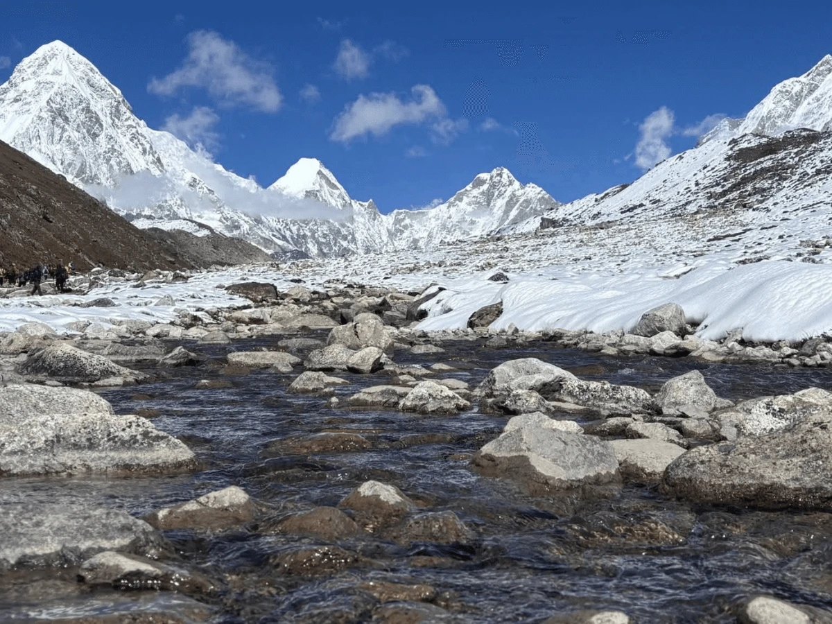 Gorakshep is the last village where you will stay overnight before hiking to EBC and Kala Patthar. From Gorak Shep, it’s a 2–3-hour trek across glacial moraines to Everest Base Camp. There is a noticeable trail across the rocky terrain, and you’ll likely trek in a group with others aiming for the same goal that day. Base Camp itself is marked by a location on the Khumbu Glacier with prayer flags and many expedition tents.